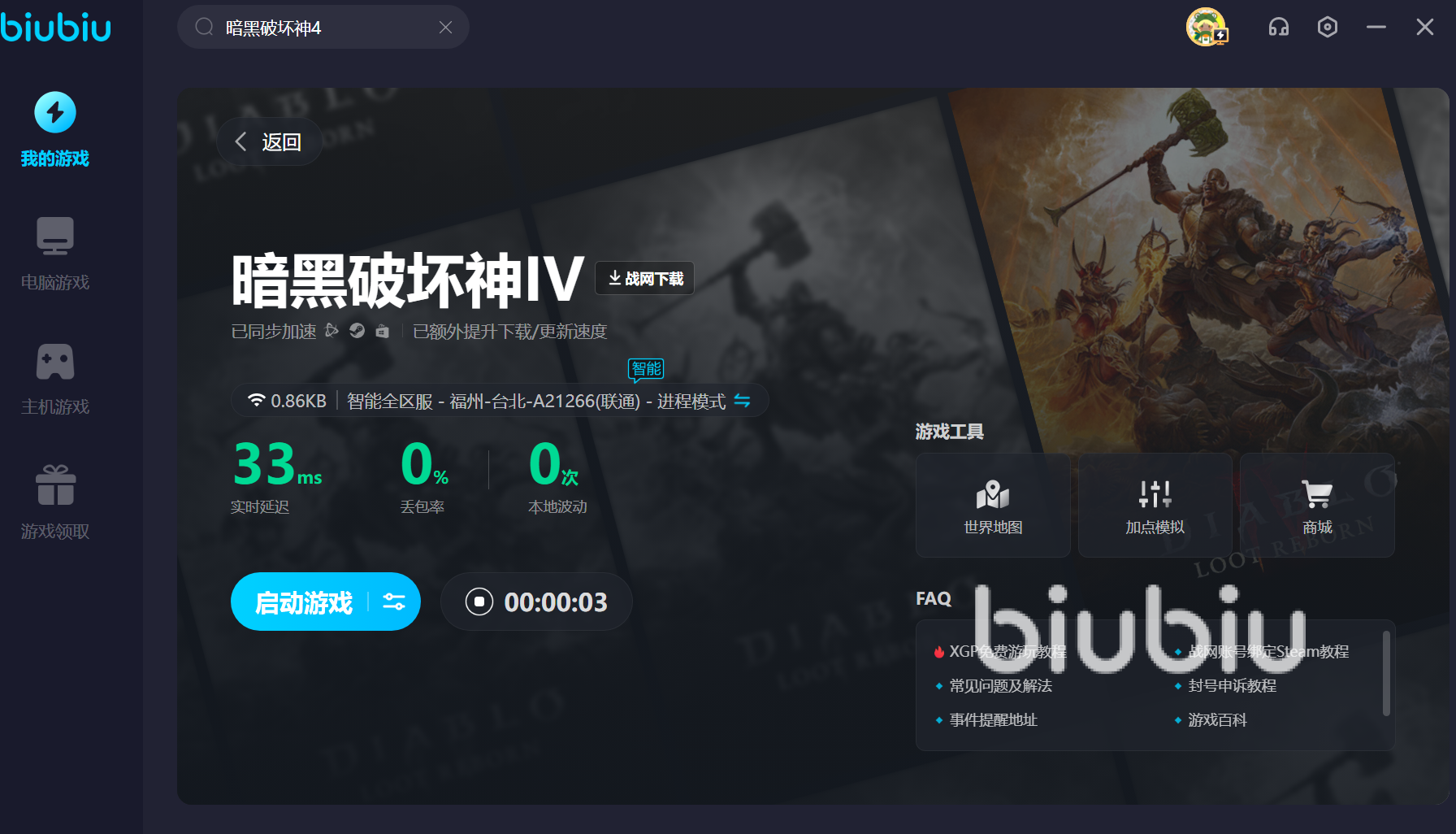 相信多數(shù)玩家都已經(jīng)了解到暗黑破壞神4卡頓怎么解決的全部信息了,在多人聯(lián)機(jī)的情況下,玩家之間組隊(duì)確實(shí)容易出現(xiàn)卡頓以及閃退等問題,這在打團(tuán)本是比較致命的,所以為了避免這種情況可以使用biubiu加速器哦!