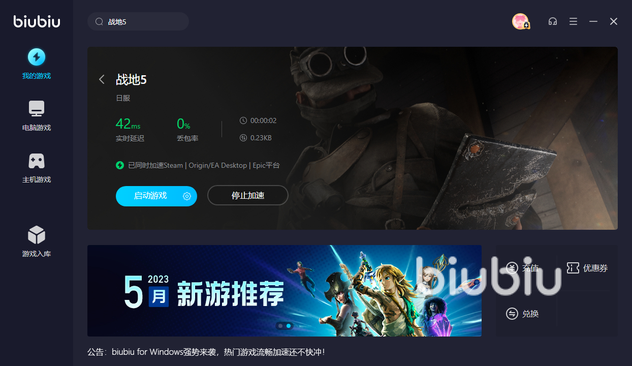 來源: 極光 作者: 果果 2023年05月23日 20:41有許多的小伙伴們喜歡去體驗3D畫面的射擊游戲,像戰(zhàn)地系列就備受歡迎,它的服務器有許多,并且主要是集中在海外,因為許多朋友都是多少會遇到卡頓以及延遲等情況,對于戰(zhàn)地5卡頓要開加速器嗎,許多朋友都是不太了解,為了能讓大家清楚的知道該如何去解決,小編建議可以去選用biubiu加速器來幫助自己去優(yōu)化網絡,如此也不需要擔心會存在卡頓或者是毫秒的誤差,導致自己的射擊出現偏差。