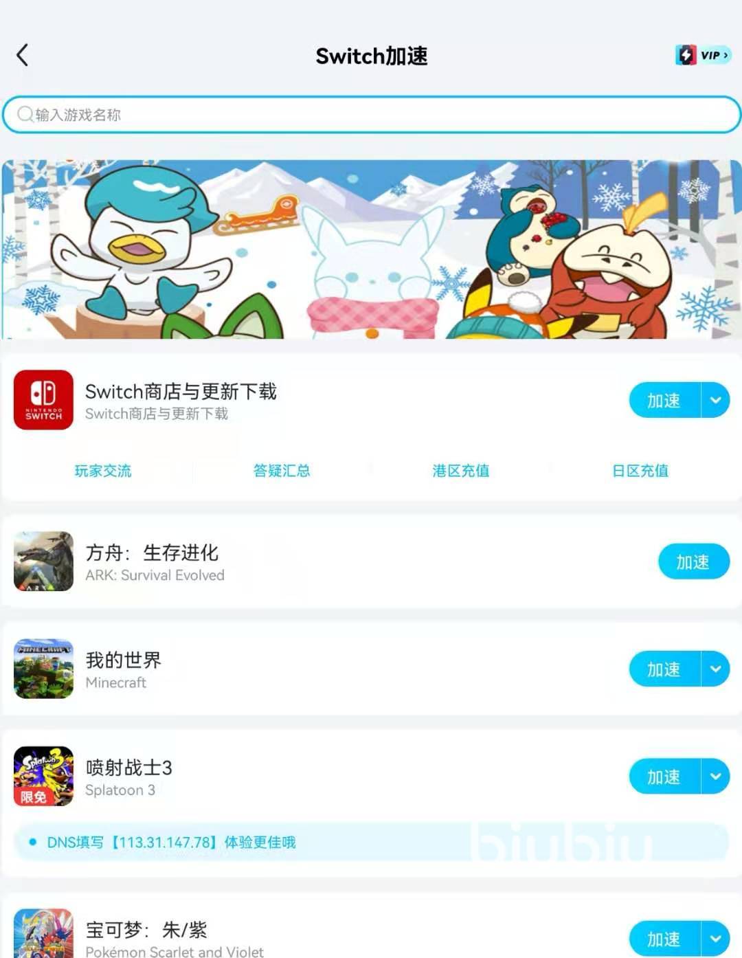 除了能給手游加速外,應(yīng)用中還包含了很多功能,其中比較實(shí)用的就是給Switch加速,大家可以在搜索框內(nèi)輸入游戲名字,就能找到對應(yīng)的加速入口了。要是你有關(guān)于加速方面的疑問,也能在答疑匯總中找到解決方案。