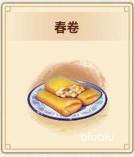 春卷需求的食材有面粉x2+蘑菇x1,我們只需要用面粉做的有韌性的面皮包住里面的餡料,再給它卷成扁圓條形的形狀后用中火炸成的一下就好了, 春卷主要有甜咸兩種口味。