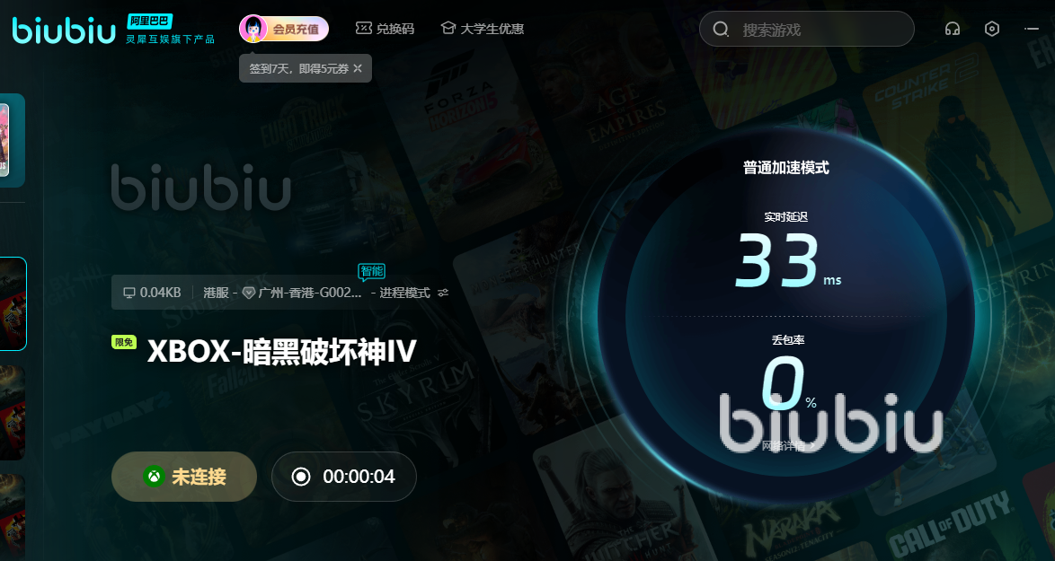 biubiu的可使用時間也是很多的,現(xiàn)在注冊新用戶登錄就可以得到免費(fèi)的24小時使用時間,另外有了兌換碼【biubiu不掉線】之后,新老用戶拿去兌換就可以得到免費(fèi)的72小時加速時長了,算一下給新人用的就是96小時了。