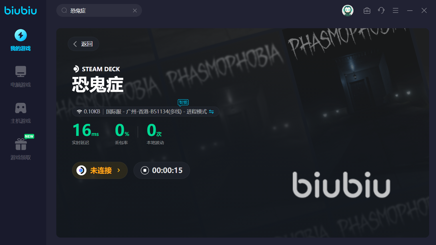 相信各位玩家都感受到,在與鬼魂拉扯過程中,如果稍不留神卡頓一下,或者直接黑屏掉線,就會無奈地被鬼抓住,團隊合作掉隊一個人都讓整局游戲變得困難。歸根結(jié)底恐鬼癥的游戲服務器位于海外,小編強烈推薦各位不想坑隊友的玩家,提前使用biubiu加速器優(yōu)化網(wǎng)絡。