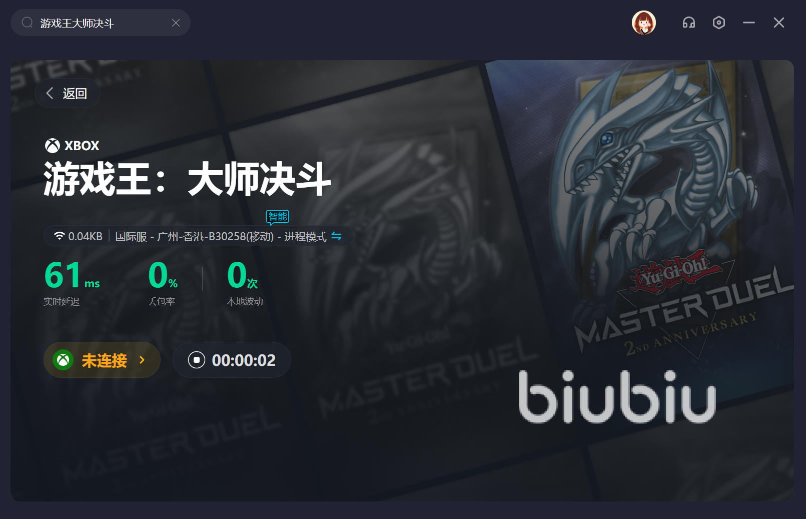 游戲當中想要培養(yǎng)一個號對于時間和精力都是有消耗的,而網(wǎng)絡運行以及提升也是需要時間的,通過啟動biubiu加速器,可以給玩家們提供穩(wěn)定的網(wǎng)絡環(huán)境,從而讓玩家可以將自己的真實實力展現(xiàn)出來,網(wǎng)絡流暢了戰(zhàn)斗也就不會有那么的弊端影響到玩家們操作了,自然也就節(jié)省了不少的時間和精力,搜索游戲王大師決斗直接就可以看到加速版本,一鍵啟動就可以享受加速服務了。