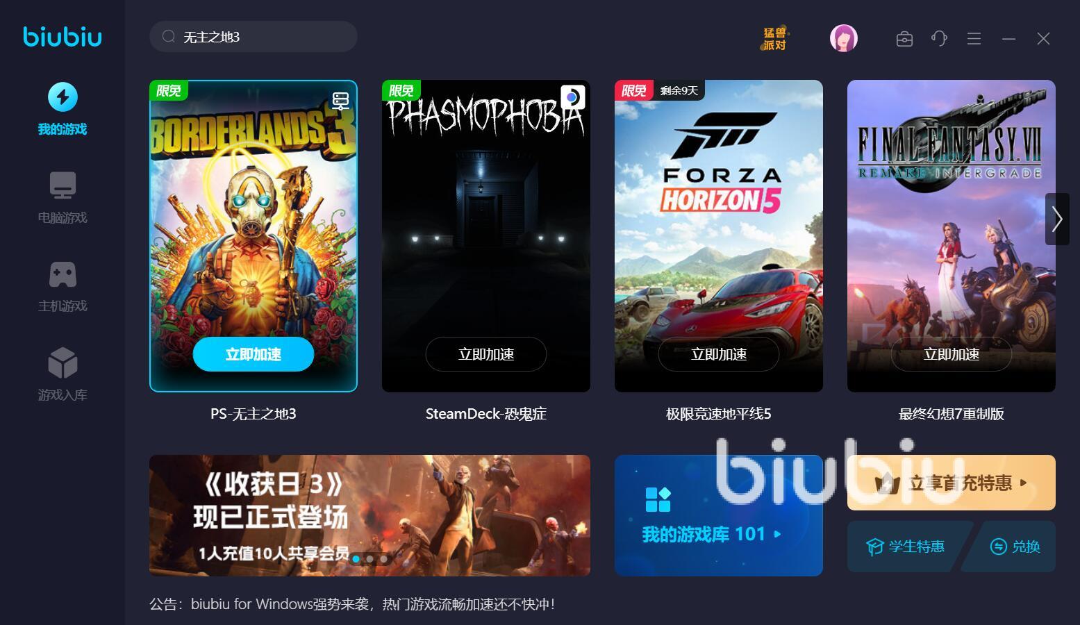 無(wú)主之地3不僅能單獨(dú)去玩,還可以組隊(duì)聯(lián)機(jī),在線上一起玩,其中原地復(fù)活的機(jī)制,讓大家可以無(wú)腦地向前猛沖,感受激烈有趣的戰(zhàn)斗。當(dāng)在線人數(shù)過(guò)多時(shí),游戲難免會(huì)發(fā)生一些卡頓或掉幀,這時(shí)候,要是有一個(gè)可靠的網(wǎng)絡(luò),就不會(huì)影響組團(tuán)打斗了。使用了biubiu加速器,可以有效降低延遲,并且軟件很容易上手,用戶(hù)只要打開(kāi)應(yīng)用,找到無(wú)主之地3的加速入口,接著點(diǎn)擊立即加速就行了?,F(xiàn)在下載體驗(yàn),還會(huì)享受新用戶(hù)注冊(cè)免費(fèi)使用加速24小時(shí)的福利。