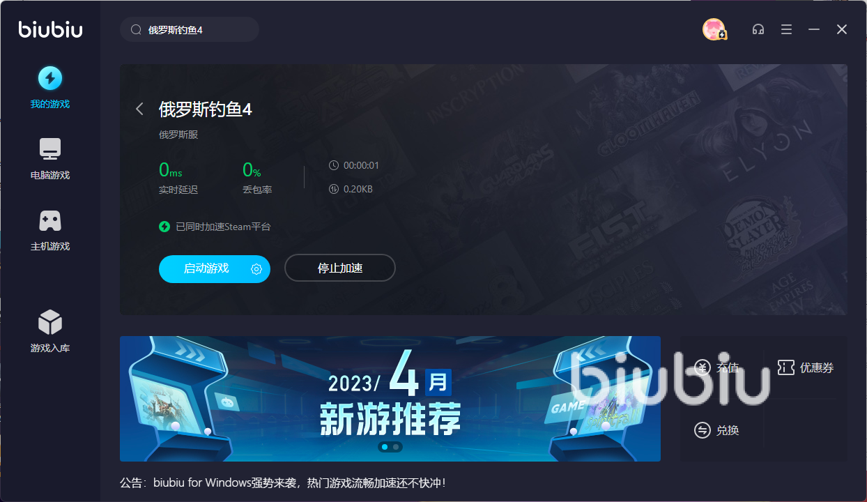 最后,biubiu加速器對于新手用戶也非常友好,只要你打開biubiu加速器,點擊俄羅斯釣魚4游戲圖標,再一鍵啟動,就能夠享受到更好的游戲體驗。