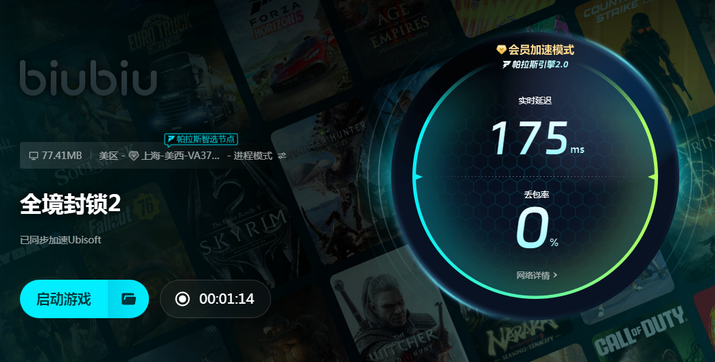 如果你不知道用哪款加速器好,那么不妨來(lái)試試小編推薦的這款biubiu,它擁有獨(dú)立游戲?qū)>€,節(jié)點(diǎn)遍布全球,核心帕拉斯引擎2.0可以有效改善弱網(wǎng)環(huán)境,大家就算使用的是普通家庭網(wǎng)絡(luò),在biubiu加速以后也能感受像電競(jìng)賽事般那樣的網(wǎng)速?,F(xiàn)在只要打開biubiu搜索全境封鎖2,就能點(diǎn)擊藍(lán)色加速鍵一鍵啟動(dòng),感受極致網(wǎng)速了。