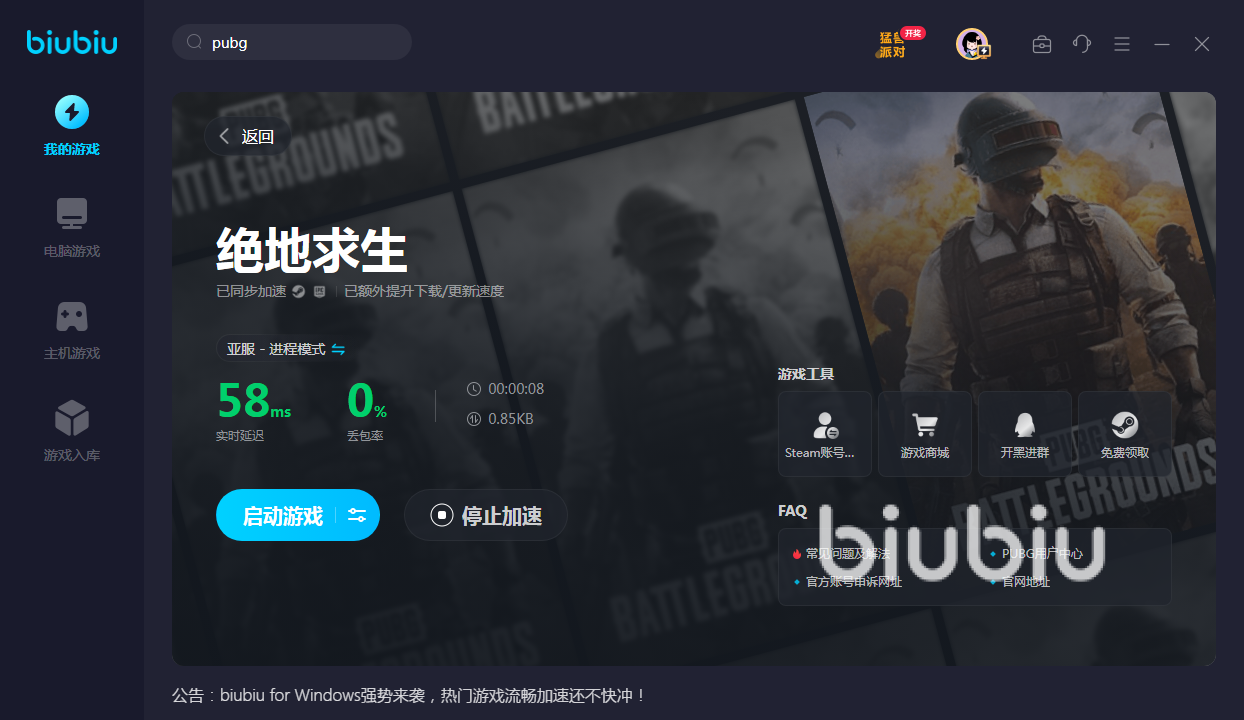 建議大家在開啟游戲之前先下載biubiu加速器,因為利用加速軟件打開之后,能獲得很多方便和便利。首先是在跨服方面,因為這款游戲設(shè)置有很多海外服務(wù)器,國內(nèi)玩家想要登陸這些海外服,需要進行各種設(shè)定。而利用加速器優(yōu)化以后就無需自己再操作,直接登錄就可以,和在國服體驗一樣,非常方便。然后是網(wǎng)絡(luò)方面優(yōu)化,因為同一張地圖中玩家數(shù)量較多,而且畫質(zhì)清晰,所以容易出現(xiàn)卡頓情況,一旦落地時出現(xiàn)卡頓就有可能直接成盒,所以優(yōu)化網(wǎng)絡(luò)降低延遲成為提高戰(zhàn)績的重要方面。這些都是該軟件可以提供給玩家的重要幫助,也是自己核心功能。