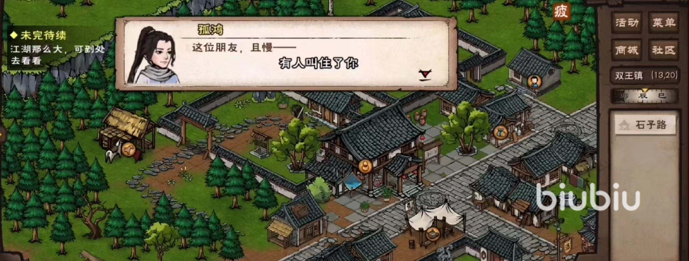 這時(shí)候繼續(xù)回到雙王客棧,找到一個(gè)叫做孤鴻的人,同樣也是要跟他對(duì)話才能觸發(fā)劇情。