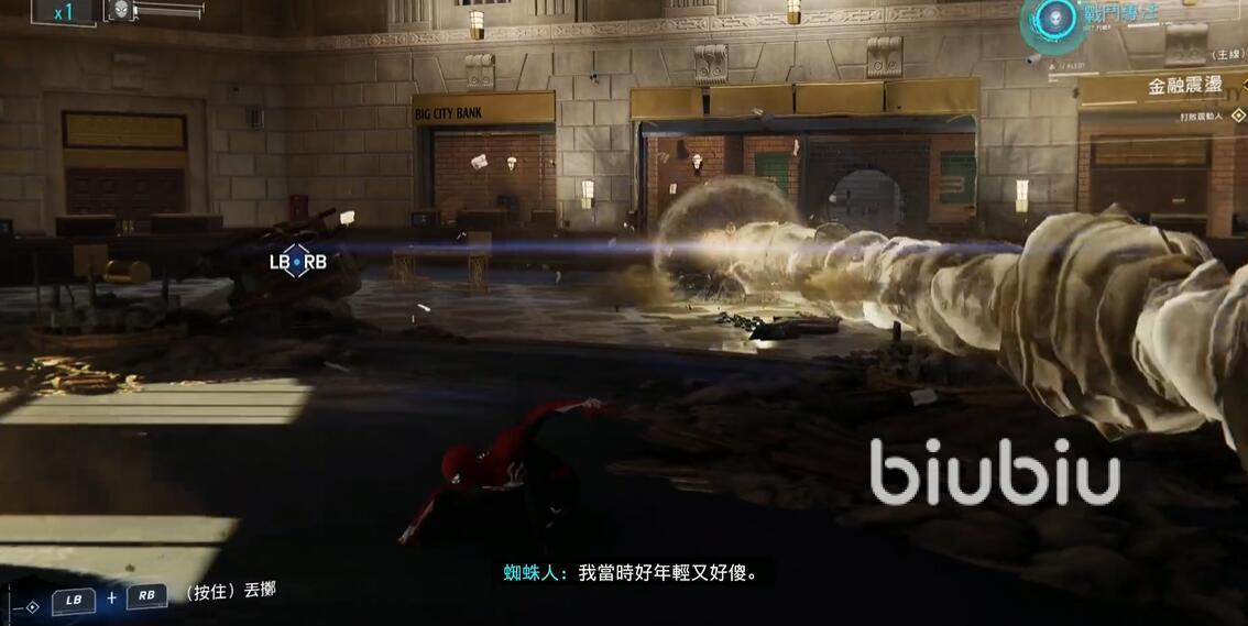 接下來的戰(zhàn)斗當中,玩家們需要小心應對敵人發(fā)射出的震動波,該技能的傷害很高,同時射程范圍也比較大。想要在這個階段對敵人造成傷害,小編建議玩家們利用蛛絲在建筑上進行盤跑,繞道震動人的后背,抓起地面的石塊發(fā)動攻擊,當防護罩再一次被打碎的時候,玩家們可以多使用石塊砸向對手來造成高額傷害。