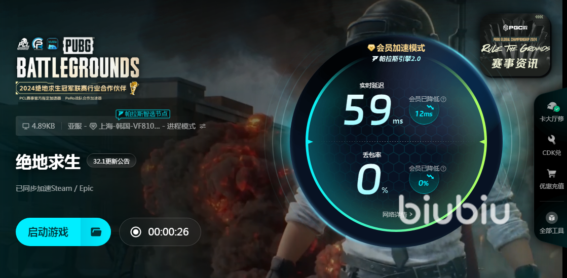絕地求生新賽季還加入了熱點(diǎn)模式,在開局的時(shí)候所有未跳傘的玩家都會(huì)被系統(tǒng)強(qiáng)制跳傘,那么在跳傘前選擇一個(gè)好的點(diǎn)位就至關(guān)重要,否則就可能會(huì)被系統(tǒng)強(qiáng)制丟到資源少的區(qū)域。用biubiu加速以后,大家可以得益于優(yōu)質(zhì)的網(wǎng)速提前選擇點(diǎn)位然后跳傘,落地后也能迅速走位尋找遮擋物或者拾取資源,獲得有利的游戲開局。