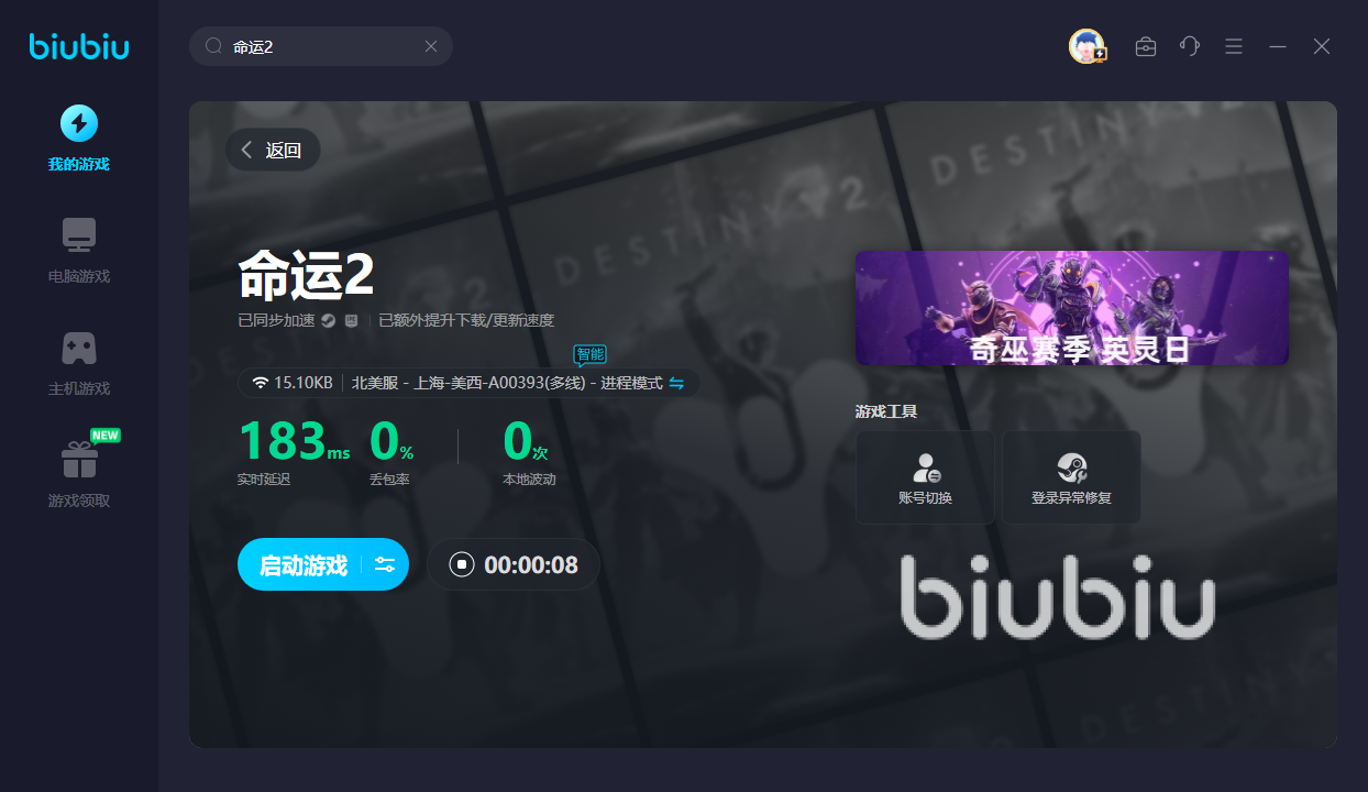 想要進(jìn)入命運(yùn)2的異世界,就需要擁有好的網(wǎng)絡(luò)條件,畢竟該游戲暫且還未上線國(guó)服,所以只能倚靠biubiu。通過(guò)順暢的網(wǎng)絡(luò)加速效果,協(xié)助各位自由地連接不同區(qū)服,例如北美服。還有加速起來(lái)也相當(dāng)容易,僅需找到游戲,接著選擇好區(qū)服,即可坐等上號(hào)。若是新用戶的話,還可獲得24小時(shí)的免費(fèi)加速,令你快人一步,隨心暢游!特別是新老用戶都可鍵入【biubiu不卡頓】,從而繼續(xù)享受三天免費(fèi)加速,令你在高速網(wǎng)絡(luò)下,隨心地體驗(yàn)這個(gè)百花齊放的異世界。