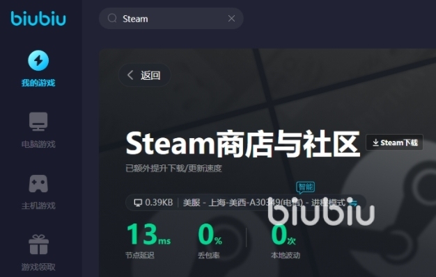 Steam平臺的加速效果生效后,就可以快速的降低網(wǎng)絡(luò)延時,這樣平臺容易卡的問題就解決了,可以任意的瀏覽各種游戲信息。另外玩游戲的時候,biubiu的加速效果也是很優(yōu)秀的,又快又穩(wěn),可以享受到流暢的幀率,跟絲滑的手感。