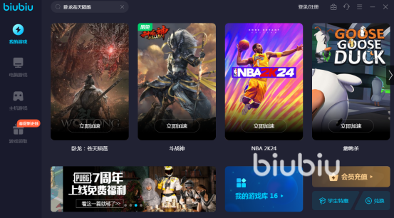 使用biubiu加速器以后,可讓每個玩家享受流暢的網(wǎng)絡對游戲帶來的完美體驗。有需求的玩家通過下載到電腦桌面以后,想要對哪個游戲加速。只要在應用當中搜索出來,就可以點擊立即加速按鈕。因為它還是一款支持海量游戲的,即使自己玩的是國外的游戲,只要是正版的基本上都能利用這款加速器改善網(wǎng)絡。