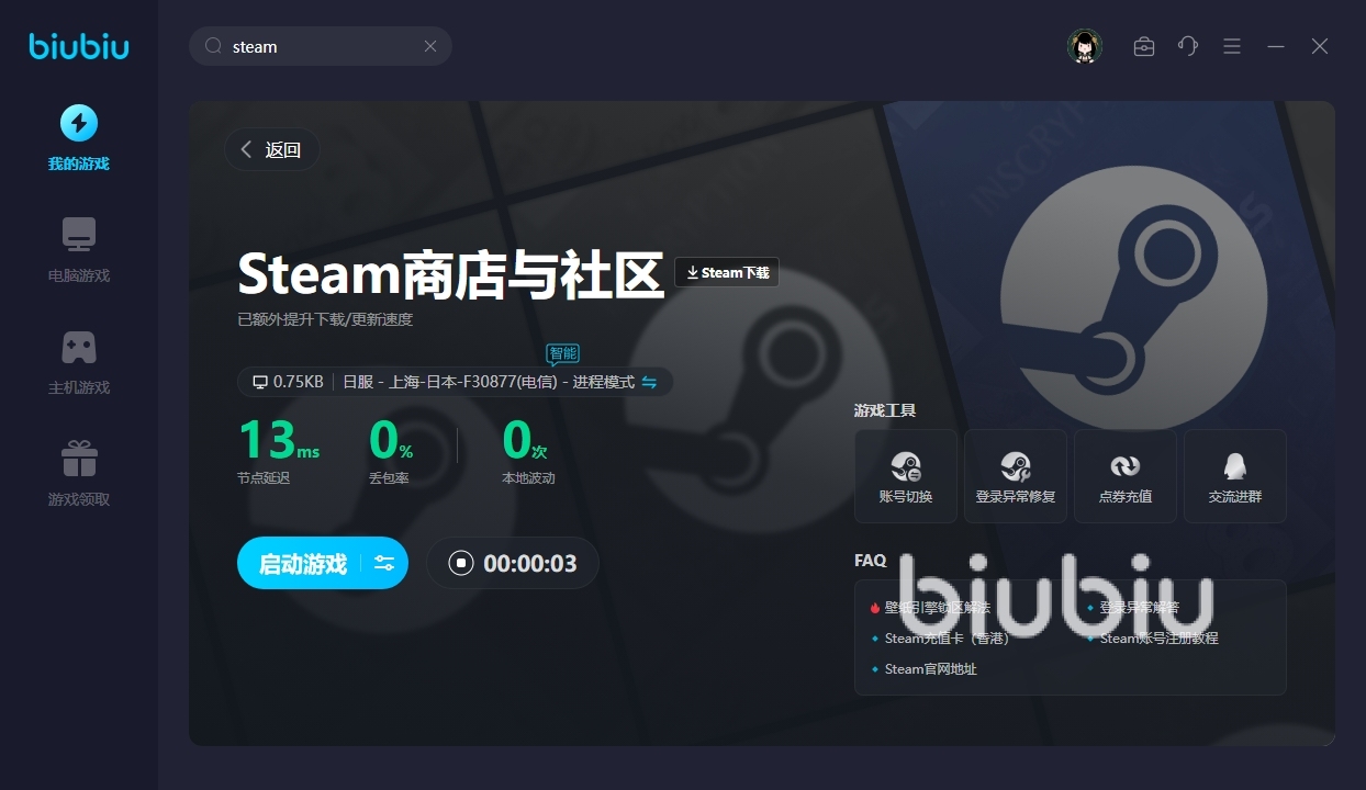 而這款游戲玩家在體驗(yàn)的時(shí)候需要通過steam來運(yùn)行,這個(gè)時(shí)候就應(yīng)該打開biubiu來進(jìn)行加速了,雖然說游戲本身在平臺(tái)并沒有搭建專區(qū),但是工具支持針對(duì)steam平臺(tái)的加速,一樣能夠?yàn)橛螒驇韮?yōu)化的,確保大家能夠獲得穩(wěn)定的體驗(yàn),并且現(xiàn)在去使用它的話,玩家還能享受到新用戶的24h免費(fèi)加速試用。