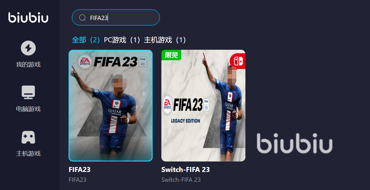 目前biubiu加速器關(guān)于FIFA 23這款游戲支持對兩個(gè)設(shè)備加速。分別為主機(jī)端和電腦端。各位玩家,如果想要精確找到這款游戲的話,可以從游戲庫中尋找,也可以直接在軟件的最上方直接搜索FIFA 23。不同的游戲端會(huì)為大家進(jìn)行清晰標(biāo)注,大家從下面的圖片中也可以看到,向switch端會(huì)在FIFA 23的前面加上相關(guān)標(biāo)識(shí)。兩款游戲都可以通過立即添加添加到自己的游戲庫中,之后就可以進(jìn)行專門針對某款游戲的提速。