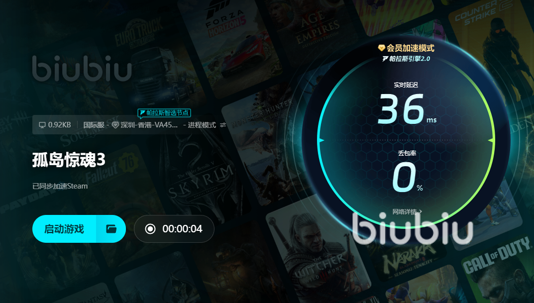 現(xiàn)在有biubiu加速器在發(fā)揮作用,各位不用擔(dān)心的,延時(shí)降低之后,丟包率也是得到了優(yōu)化,一直在0的狀態(tài),就是我們不掉線的保證。大家只要能夠順利的操作人物,那我們的角色攀爬或者進(jìn)行攻擊都會(huì)順手的,當(dāng)然也就更好的存活下來,完成任務(wù)然后通關(guān)了。