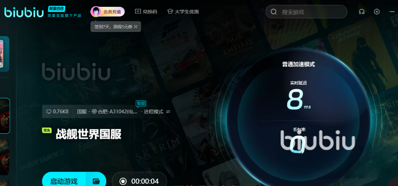 現(xiàn)在這款游戲還擁有眾多的優(yōu)勢,例如新用戶在完成注冊后可獲得24小時新手福利。在平臺頁面上輸入兌換碼【biubiu不卡頓】,可以在24小時的基礎(chǔ)上又額外得到三天免費加速時長,用戶結(jié)合這兩種方法可以免費96小時。可以在游戲中盡情地享受海上作戰(zhàn),不需要擔心游戲卡頓。