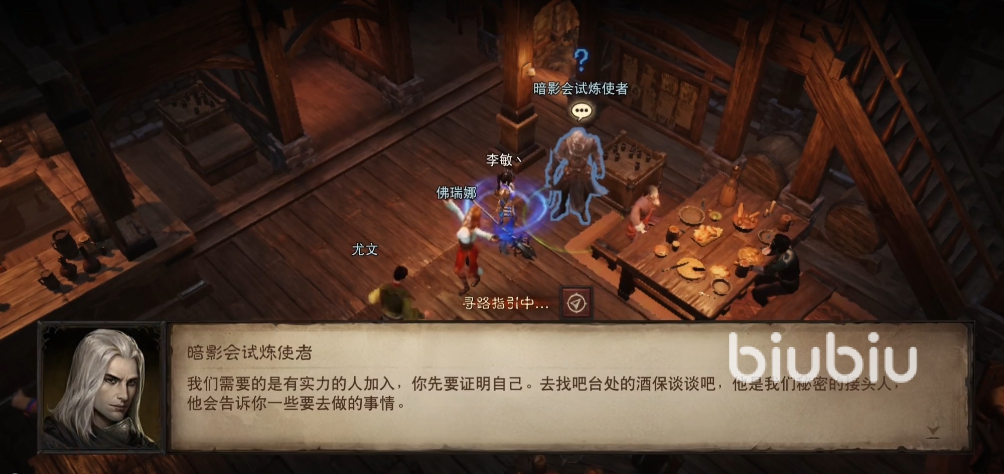 之后來到酒館內(nèi)報名開始任務(wù),和NPC試煉使者交談后報名選擇加入暗影會,很多小伙伴都反映找不到這個NPC,這是因為這個NPC每天只會在每天的12點 、18點和21點刷新出來。只有這幾個整點才能夠成功報名,如果錯過之后就只能等下一個時間點了。而且一定要提前等候,因為報名人數(shù)有限制,報滿了也就只能等下次。