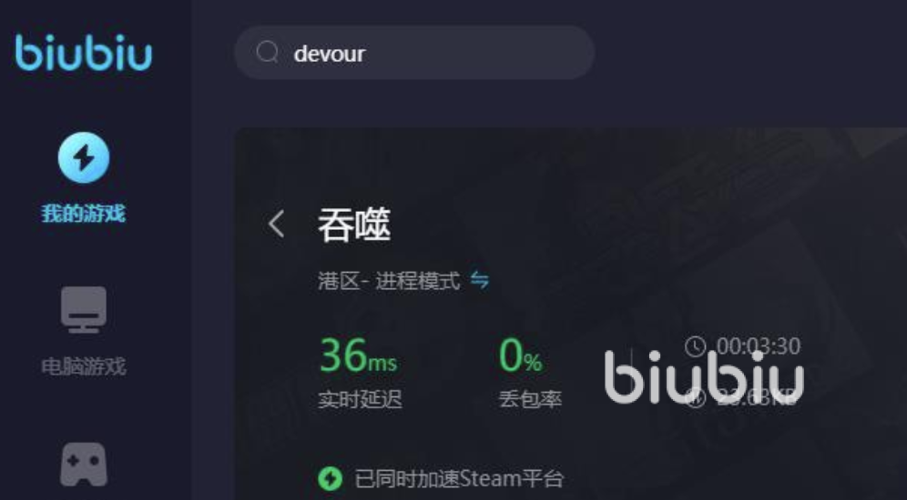 很多加速平臺所包含的資源不是那么豐富,所以很多玩家在搜索的時候,無法搜索定位自己想要玩的游戲,而biubiu這會不斷為玩家們添加各種熱門熱門游戲,基本上大家在玩的游戲都能輕松找到,吞噬這款游戲也在其中,搜索完成添加到游戲列表方便第二次操作,同時還能夠在后臺看到各項加速數(shù)據(jù)的相關(guān)展示,讓大家可以隨意了解當前的網(wǎng)絡(luò)問題。