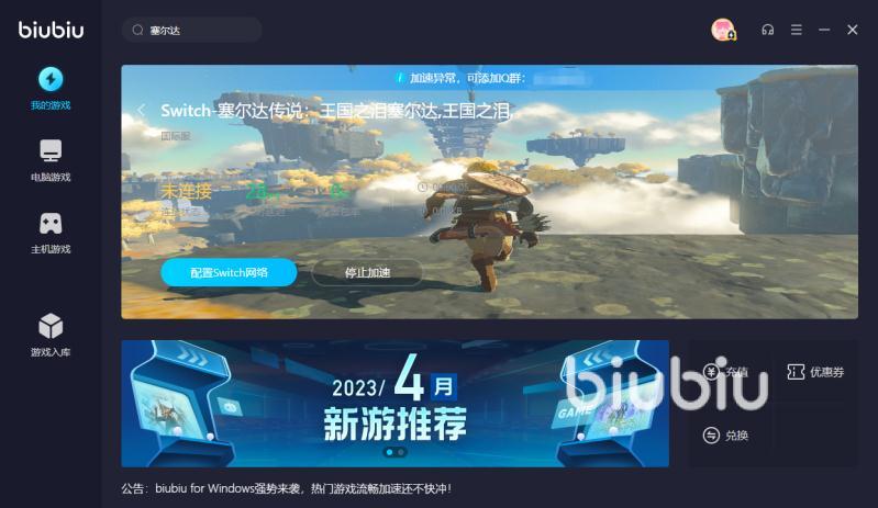 塞爾達傳說王國之淚加速器怎么用 塞爾達傳說2biubiu加速器下載