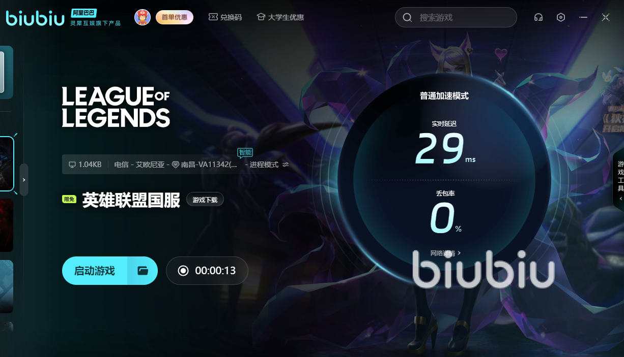 來源: 極光 作者: 夕顏 2024年10月04日 15:32英雄聯(lián)盟作為一款由美國(guó)拳頭游戲開發(fā),深受全球玩家喜愛的MOBA競(jìng)技網(wǎng)游,以其豐富的英雄角色和緊張刺激的5V5團(tuán)戰(zhàn),吸引了無數(shù)游戲愛好者的關(guān)注。無數(shù)小伙伴都想要找一個(gè)英雄聯(lián)盟加速器,來保證在游戲中激烈戰(zhàn)斗的流暢性,今天小編將為大家?guī)硪豢钸m用性極強(qiáng)的biubiu加速器,幫助大家解決這些煩惱。
