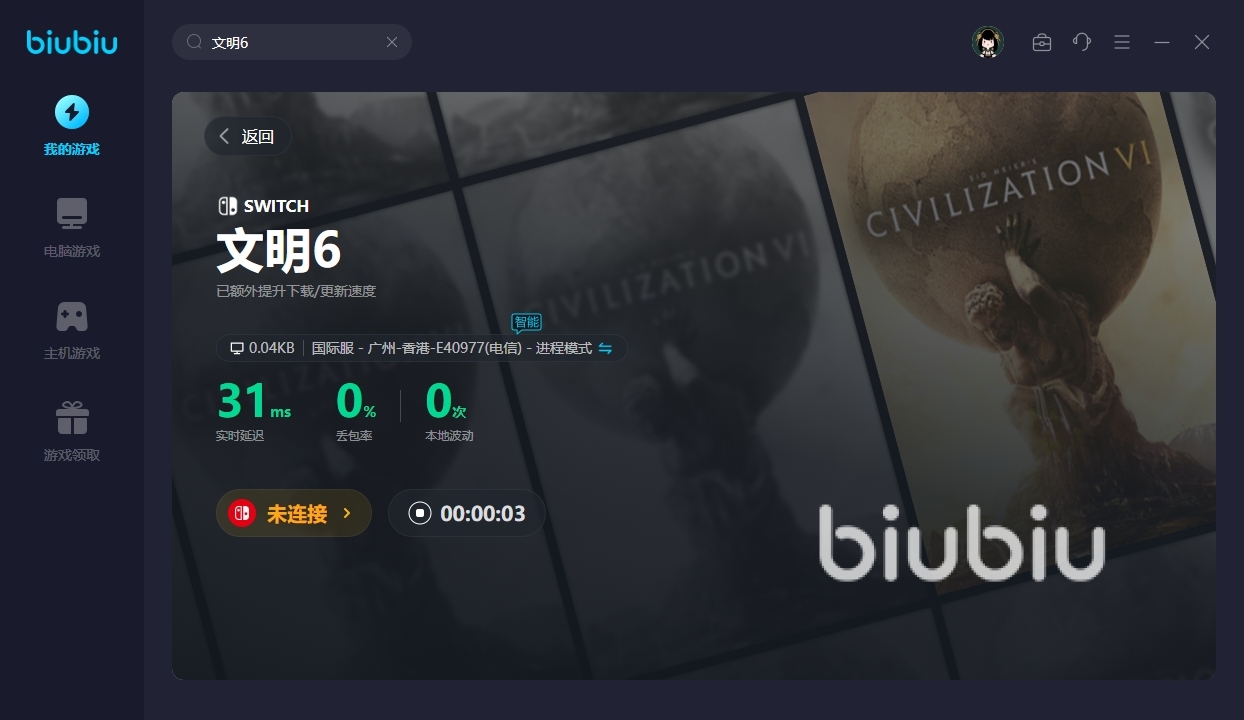 來源: 極光 作者: 果果 2024年02月27日 15:58對于這款游戲,大家應(yīng)該都不會陌生,玩家能夠在里面去建立起偉大的文明時(shí)代,同時(shí)也可在這片土地上去生活,通過自己的努力來低于外來敵對勢力的入侵,對于文明6游戲崩潰怎么辦這個(gè)問題一直都有很多玩家不清楚,其實(shí)在游戲的體驗(yàn)過程中,大家要是網(wǎng)絡(luò)卡頓情況很嚴(yán)重,甚至還經(jīng)常發(fā)生延遲的話,小編覺得去使用biubiu就很關(guān)鍵了,作為專線加速工具,它能為大家輕松帶來穩(wěn)定的加速效果。