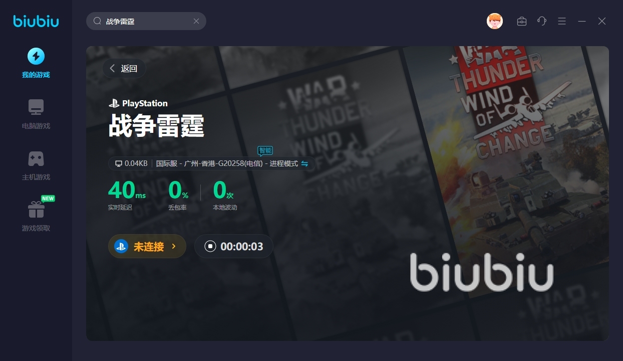 戰(zhàn)爭雷霆這款游戲精彩地把戰(zhàn)場模擬和各類動作元素結合在一起,其中戰(zhàn)斗的構成也是讓玩家獲得優(yōu)質體驗的核心關鍵所在,然而若是各位的網(wǎng)絡連接不夠穩(wěn)定的話,就很難充分施展自身的軍事才能,若是大家去使用biubiu就能夠有效解決這一難題,因為它是通過專用的線路來為大家實現(xiàn)高效加速的,能瞬時提升用戶的網(wǎng)速至極高的KB,無論是玩游戲還是打算去針對平臺的游戲進行下載更新,它都能提供一個流暢的加速體驗。
