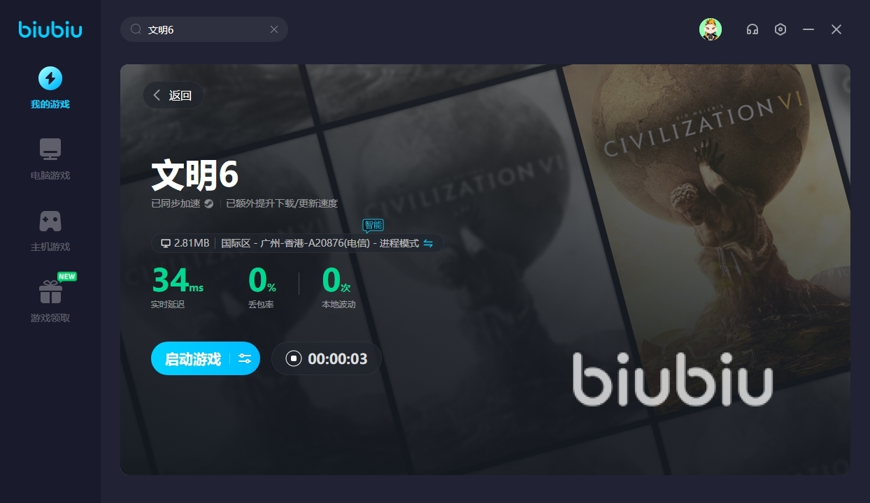 來(lái)源: 極光 作者: 果果 2024年07月02日 15:58很多玩家對(duì)戰(zhàn)爭(zhēng)策略類的游戲還是十分喜歡的,像文明6就是其中之一,這款游戲覆蓋了多個(gè)不同都不版本,服務(wù)器的選擇也很豐富,一旦遇到了文明6延遲,那么大家就需要去通過(guò)加速器來(lái)進(jìn)行穩(wěn)定,尤其是一些海外服的玩家,因此小編推薦各位可優(yōu)先考慮一下biubiu,小伙伴們對(duì)于此有想法的話,就一起來(lái)看看吧。