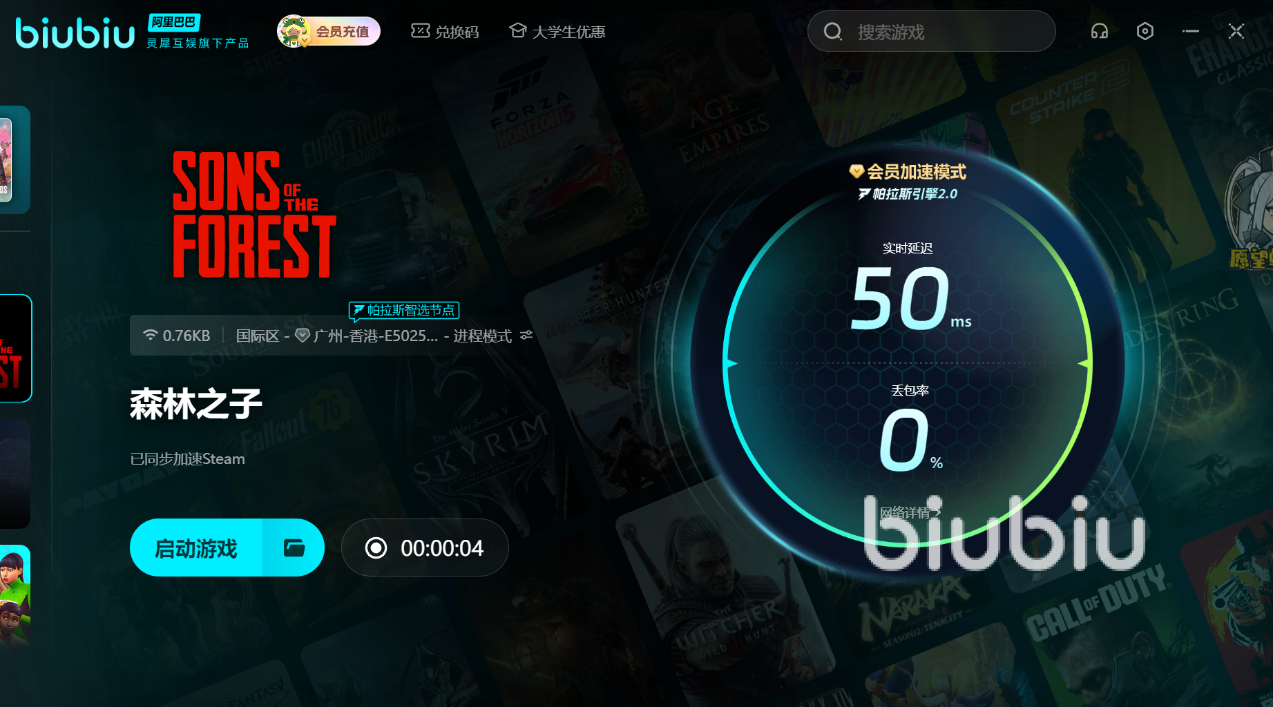 森林之子開局的時(shí)候玩家們會(huì)步入一片恐怖的森林,這個(gè)森林里都是食人生物,而玩家則只能通過周圍的道具來制作出強(qiáng)大的防具以及裝備,來射殺這些怪物,建造一個(gè)生存基地供自己存貨,而為了能降低游戲難度,很多玩家都會(huì)選擇跟其他玩家一起聯(lián)機(jī)游玩游戲,但是在游玩的過程中,老是特別卡,還經(jīng)常掉線,這讓隊(duì)友的游戲體驗(yàn)變?cè)愀饬撕芏?,biubiu加速器就能緩解這類的網(wǎng)速問題,并且新人在注冊(cè)后便獲24小時(shí)免費(fèi)加速,以及新老用戶使用兌換碼【biubiu不卡頓】可獲3天免費(fèi)的使用權(quán)哦!