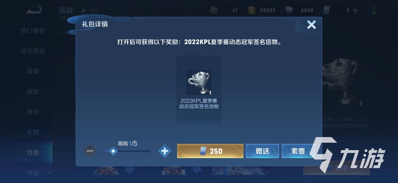 這次的活動(dòng)主要是和大賽有關(guān),也是為了讓玩家們進(jìn)一步認(rèn)識(shí)大賽,以上就是關(guān)于王者榮耀冠軍簽名信物有什么用的內(nèi)容,其實(shí)這些道具就是間接性的貨幣,玩家在使用的時(shí)候只要想好想要兌換的是哪個(gè)就好。