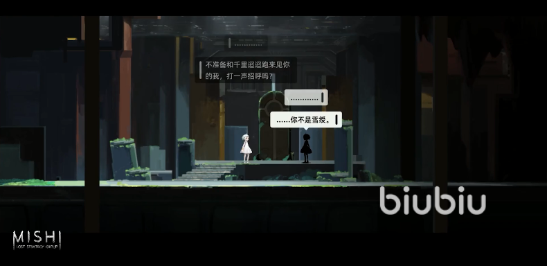 “所以說(shuō),你不想在等了?要離開落葉城尋找永無(wú)鄉(xiāng)?”玩家(主角)告訴影子,這里其實(shí)也是落葉城的初始之地,這里也是當(dāng)時(shí)的第一塊地基,腳下的平臺(tái)其實(shí)是以個(gè)升降機(jī),曾經(jīng)建筑師用這種方法升上地面,但現(xiàn)在已經(jīng)無(wú)法使用。離開這里,還有一種辦法就是讓時(shí)光倒流,只要兩個(gè)人一起就會(huì)發(fā)生奇跡,盡管雪綬已經(jīng)不在了,但是她存在的痕跡并沒(méi)有被抹去,玩家問(wèn):“你愿意接納我這個(gè)新朋友一起尋找永無(wú)鄉(xiāng)嗎?”“.......我叫雨仙?!庇白幼龀隽嘶卮稹>o接著時(shí)光倒流,她們乘坐升降梯回到了地面,游戲完結(jié)。