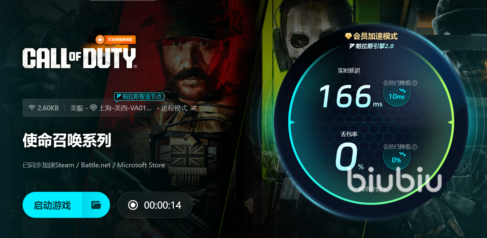 來源: 極光 作者: 璨 2024年11月13日 18:00《使命召喚》(cod)作為一款熱門的射擊游戲,憑借其精美的畫面、緊張的戰(zhàn)斗和豐富的游戲模式吸引了大量玩家。然而,許多玩家在游戲過程中常常遇到一個(gè)讓人頭疼的問題——閃退。那么cod閃退怎么解決,閃退可能是由于網(wǎng)絡(luò)連接不穩(wěn)定,導(dǎo)致與游戲服務(wù)器的連接斷開,大家想要網(wǎng)絡(luò)問想的話,那么,Biubiu加速器可以為你提供有效的幫助。