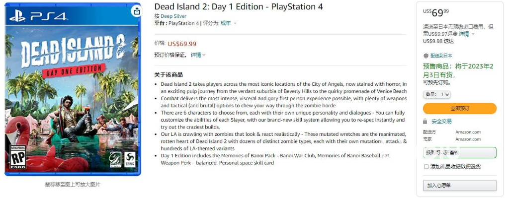 最近,有國(guó)外網(wǎng)友發(fā)現(xiàn)亞馬遜方面泄露了《死亡島2》的發(fā)售信息,該作已經(jīng)跳票8年,頁(yè)面顯示2023年2月3日發(fā)售,登陸Xbox及PS5平臺(tái)。