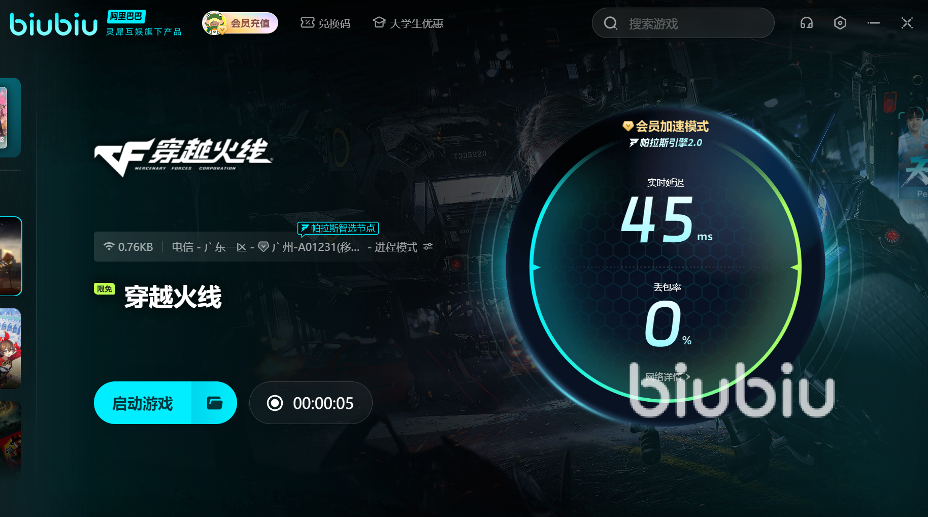 穿越火線的對局是非常激烈的,玩家需要需要使用各類型的槍支將敵方全部殲滅,很考驗(yàn)玩家們團(tuán)隊(duì)之間的配合,但要是對局期間頻繁掉線的話,就很容易被敵方找到突破口直接掃射死,很影響隊(duì)友們的體驗(yàn),而且還經(jīng)常受到舉報(bào),導(dǎo)致很多對局都無法正常打開,那不妨使用一下biubiu加速器,能有效整頓網(wǎng)絡(luò)慢的問題,并且新人在注冊后便獲24小時免費(fèi)加速,以及新老用戶使用兌換碼【biubiu不卡頓】可獲3天免費(fèi)的使用權(quán)哦!