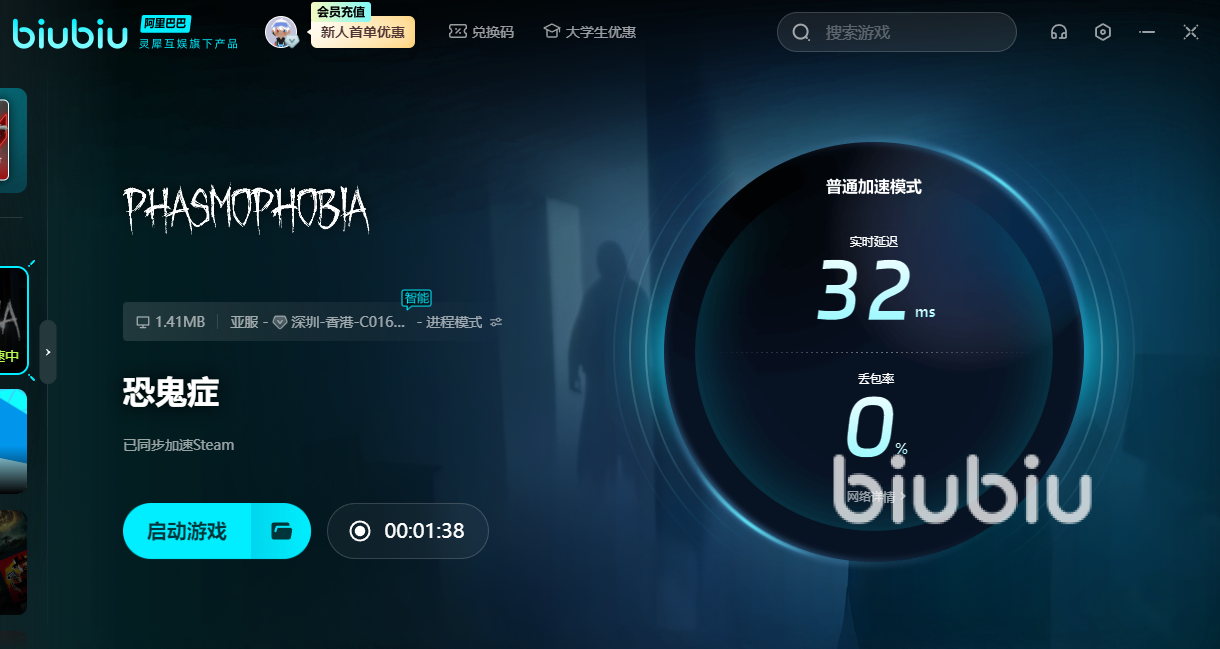 恐鬼癥是一款外服游戲,網(wǎng)絡連接的問題也可能會導致游戲閃退,玩家可以點擊上方鏈接下載一個biubiu加速器優(yōu)化網(wǎng)絡環(huán)境,現(xiàn)在下載官方為新注冊的用戶會提供24小時的免費加速時長,和首次優(yōu)惠充值的活動,如果不是新用戶也不用心急,新老用戶都可以使用兌換碼【biubiu不卡頓】再獲得72小時免費加速時長。