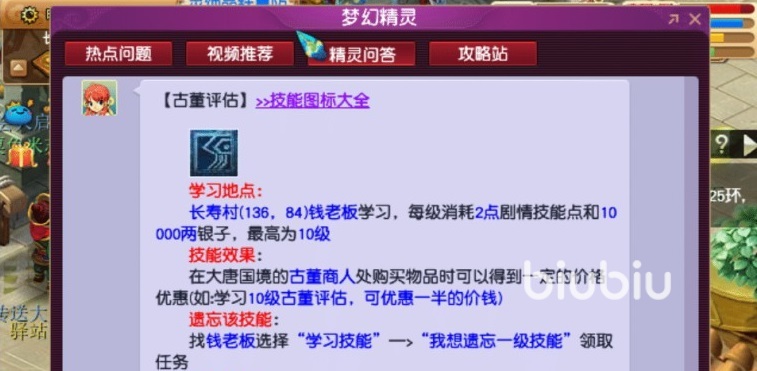 本次調整主要的基調就是將技能的效果進行優(yōu)化,使得大家更容易獲得饋贈。學習的方式沒有改變,依然是去長壽村,在錢老板處學習到古董評估的技能。每學習一級需要消耗兩點劇情點數,最多能夠學到10級?,F在調整后的技能效果為玩家可以對各種物品作出評估,在古董商人交易時將更加容易獲得饋贈。