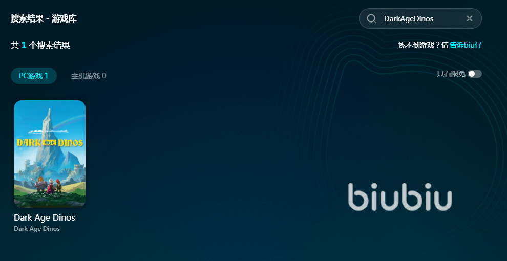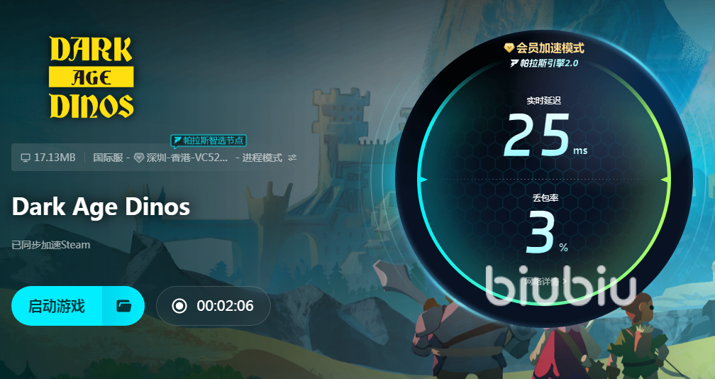 如果你還沒體驗過biubiu加速器,趕緊趁著現(xiàn)在有新用戶免費加速24小時的機會下載體驗吧,點擊上方按鈕就能看到它的安裝鏈接。它擁有專業(yè)的游戲加速線路和正規(guī)授權(quán)的DarkAgeDinos資源,在軟件里搜索到游戲以后就能開啟加速功能了。