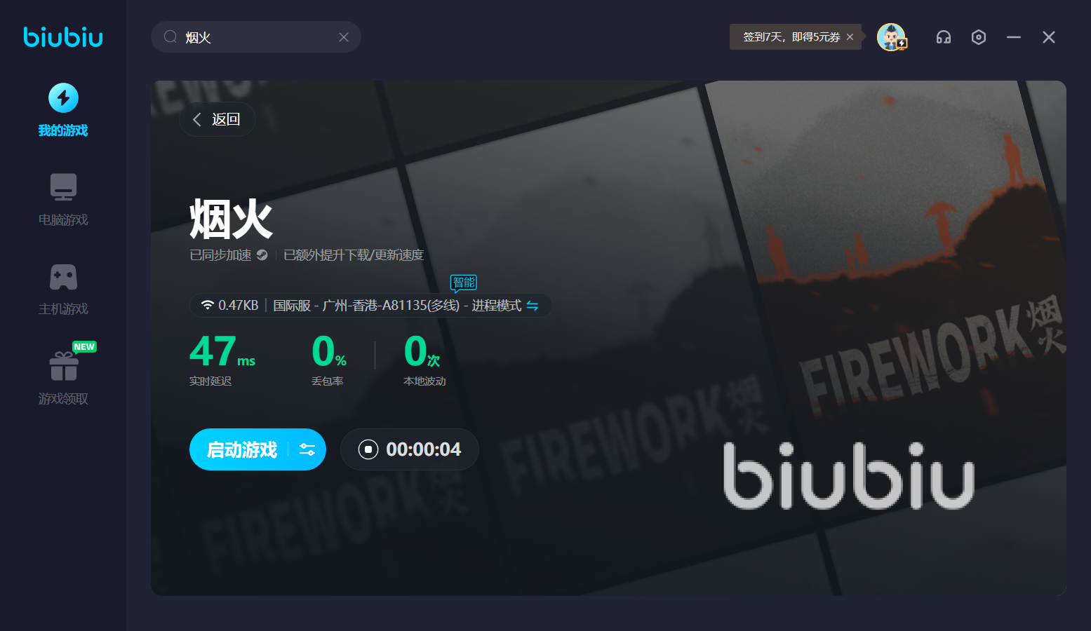 來(lái)源: 極光 作者: 昊 2024年07月01日 15:30煙火是一款深度挖掘中國(guó)特色元素的驚悚懸疑推理游戲佳作。游戲以一座位于偏遠(yuǎn)山區(qū)的小城為舞臺(tái),玩家扮演新人警探,去解密混沌不清的種種案件。那么大家知道好用的游戲煙火延遲加速器推薦有什么嗎?游戲中玩家通過(guò)偵探不同的案件,逐步偵探過(guò)程中會(huì)接觸到受害者的過(guò)去,同時(shí)案情也會(huì)逐漸浮出水面。那這個(gè)游戲在長(zhǎng)時(shí)間運(yùn)行的過(guò)程中也經(jīng)常會(huì)出現(xiàn)網(wǎng)絡(luò)延遲高的現(xiàn)象,這種情況推薦大家可以使用biubiu加速器去解決。