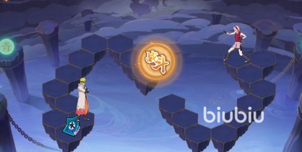 第3關(guān)剛開(kāi)始就需要搖晃一下手機(jī),可以直接觸發(fā)第3關(guān)的彩蛋,獲得隱藏成就。等到格子掉落之后會(huì)看見(jiàn)有三個(gè)不同的道路,此時(shí)繼續(xù)搖晃手機(jī),能夠?qū)⒌貓D中的火格和冰格全部震碎消失。將鳴人移動(dòng)到左側(cè)的時(shí)空卷軸上,此時(shí)可以改變格子的布局。之后按照下圖的指示,將名人鳴人和小櫻移動(dòng)到指定位置就能觸發(fā)戰(zhàn)斗,擊敗boss之后通關(guān)第3關(guān)。