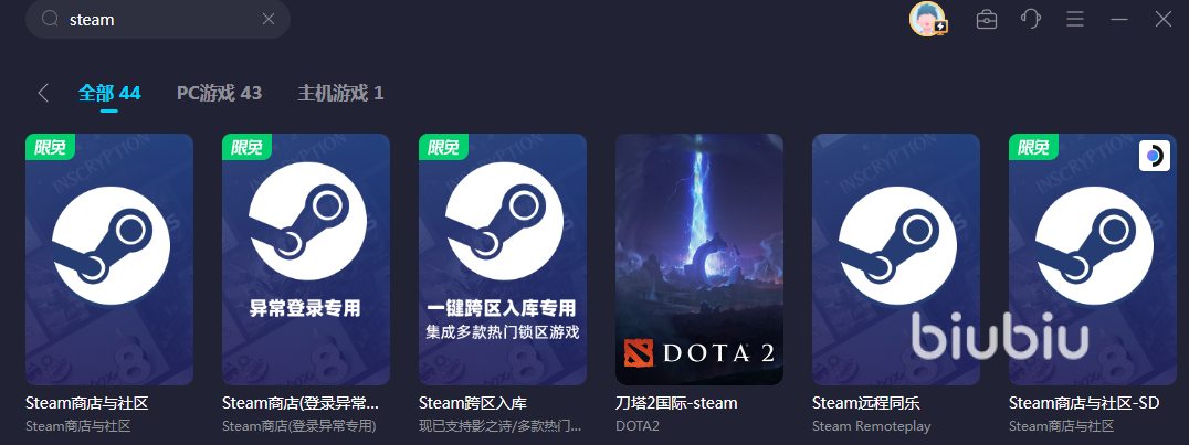 biubiu的加速功能十分強大,支持的游戲也多。大家不管是想要加速steam平臺還是加速steam游戲都可以,軟件收錄了非常多的游戲,只要是能夠搜索到的平臺和游戲都支持一鍵加速。