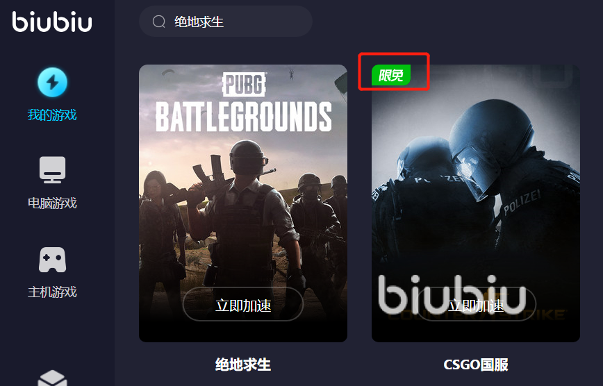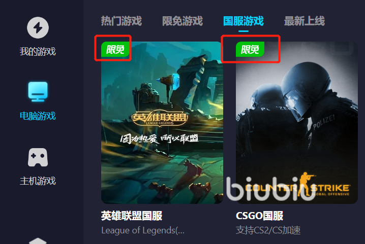 其次,不知道大家有沒有注意到在biubiu加速器平臺內(nèi),出了游戲加速外,還有著相當(dāng)大的游戲庫,這主要服務(wù)玩家們對于不同游戲的使用要求,因為游戲肯定不會就玩一款的,加速器也要變通。大家平常游戲玩膩了不妨看看有什么新游戲,加速體驗一下,說不定有新的游戲樂趣呢?不單單是大家熟知的國服游戲,還有主機游戲等,一般游戲左上角寫著限免字樣的那么就可以免費使用,這對于學(xué)生黨來說那是相當(dāng)不錯的,記得要體驗一下哦。