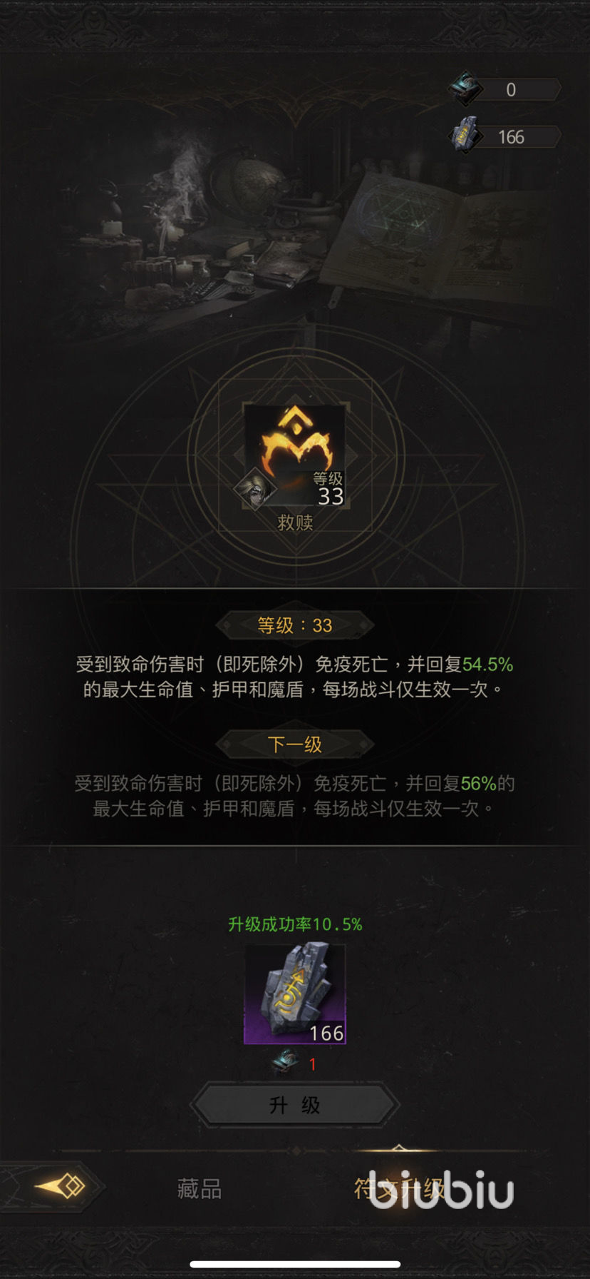 2、救贖:推薦度非常高,主要作用是在自己受到致命傷后免疫死亡,并且恢復(fù)自己10%的最大血量以及護(hù)甲和魔盾,不過(guò)每次戰(zhàn)斗只能觸發(fā)一次。這個(gè)主要也是用來(lái)增加游戲容錯(cuò)率的,很多關(guān)卡一打就是幾十回合,基本都是在堵幾率,比如BOSS暴擊翻車之類的。在有了救贖后相當(dāng)于給自己一個(gè)保險(xiǎn)。