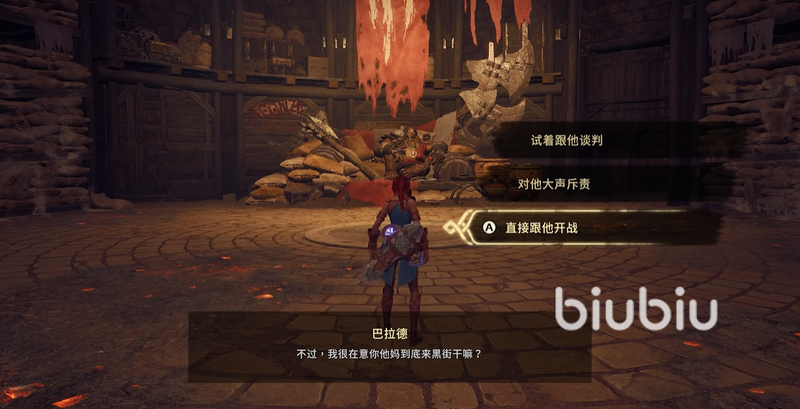 玩家們想要與該BOSS進(jìn)行戰(zhàn)斗的話,前提是需要完成戰(zhàn)斧幫寨的任務(wù),擊敗了所有幫寨的小怪之后,就會最終來到巴拉德的住所當(dāng)中,一見面玩家們就會和boss進(jìn)行對話,同時會出現(xiàn)多個選項。小編建議大家直接選擇第三個,因為即便是選擇前兩個的話,這場戰(zhàn)斗依然是無法避免的。