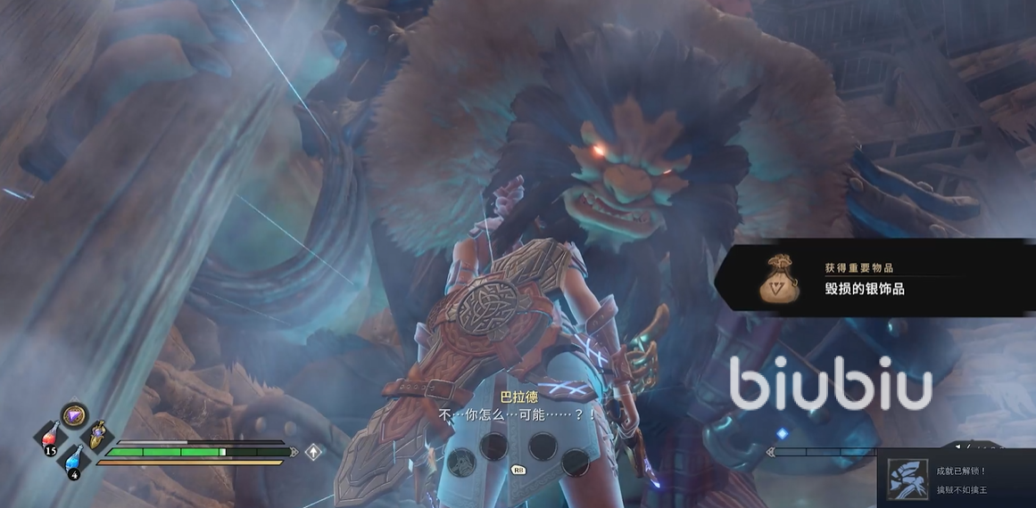 進(jìn)入戰(zhàn)斗之后,各位可以很明顯的發(fā)現(xiàn)對方的體型非常巨大, 同時在揮舞巨斧的過程當(dāng)中也有著不錯的范圍傷害,不過對方最大的缺點就是在近處,施展攻擊的過程當(dāng)中,玩家們可以直接移動到巴拉德的小腿位置進(jìn)行攻擊,而敵人的反擊很容易對這里忽略,無法對玩家們造成有效的傷害。