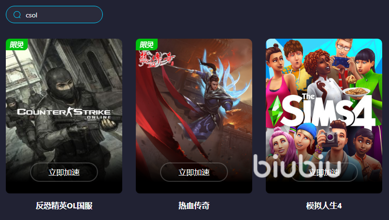 可能有些玩家會(huì)好奇,為什么小編極力推薦它,而不是其他的工具,要知道在現(xiàn)在的市面上,能主打針對(duì)游戲進(jìn)行加速的工具可不多,而它就是其中之一,同時(shí)里面涉及的游戲種類也是十分豐富,像csol就是其中之一,并且小伙伴在安裝成功以后,也就僅僅是去搜索一下就能夠看到,之后再次點(diǎn)擊就能夠進(jìn)入里面來(lái)為游戲開(kāi)啟加速,如此也不用在顧慮會(huì)存在掉線的情況,當(dāng)然了這么方面的工具,小編也是把鏈接給大家留在了上面。