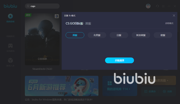 這款游戲的玩法方面相信大家都十分熟悉了,國(guó)服游戲的網(wǎng)絡(luò)表現(xiàn)其實(shí)還比較可以的,但是由于這樣那樣的原因,在游戲內(nèi)容方面存在一定的滯后性,而且比較核心的交易完全系統(tǒng)有一定的刪減,這也是很多玩家寧愿花錢去購(gòu)買國(guó)際服的原因之一。而csgo國(guó)際服細(xì)分了很多的區(qū)服版本,如果大家在不開(kāi)啟加速器直接游玩的情況下,極容易遇到卡頓不流暢的情況,小編正在使用的biubiu加速器就是一款頗為專業(yè)的網(wǎng)游加速器,可以解決大家的煩惱。
