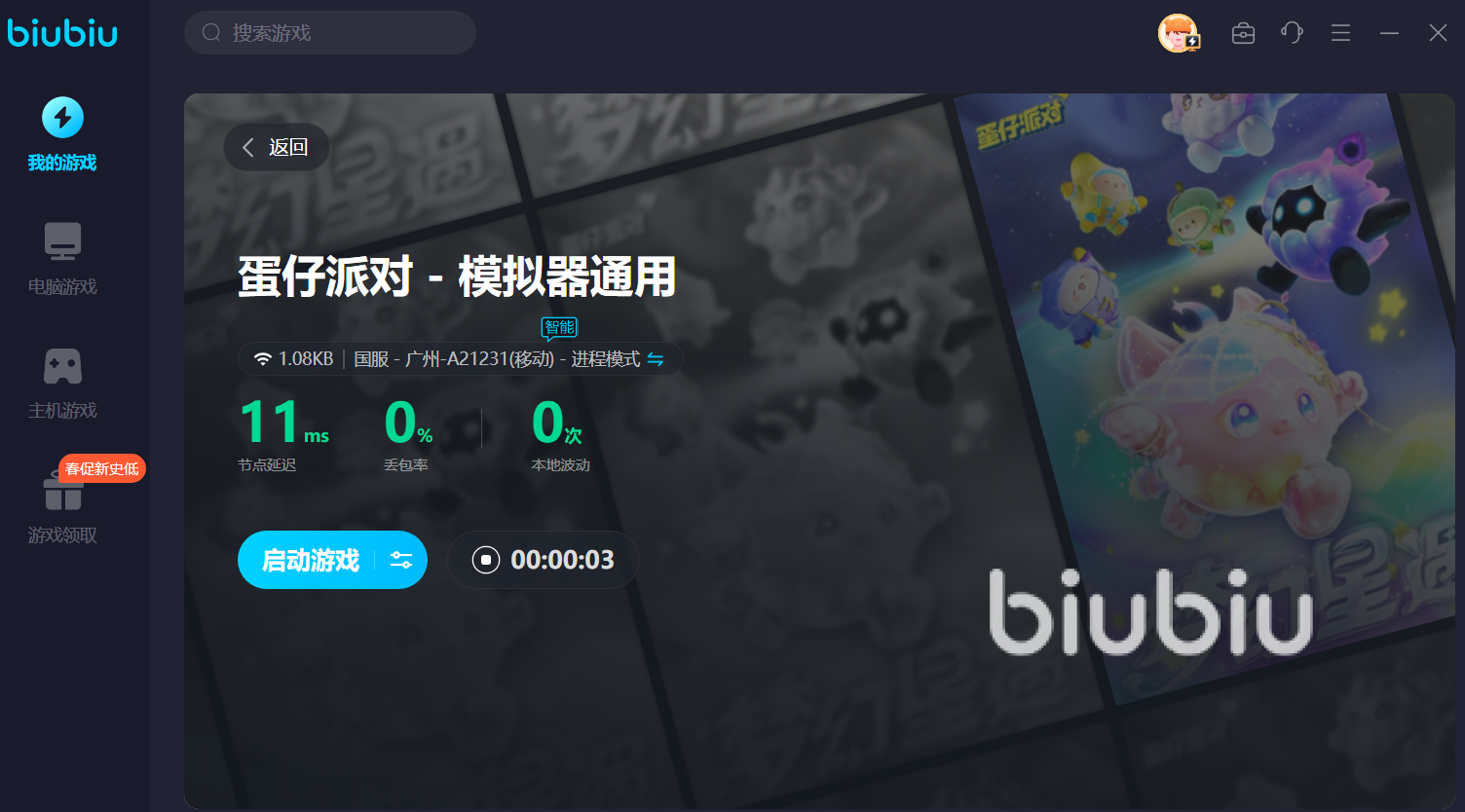 使用biubiu加速器加速蛋仔派對(duì)也很簡(jiǎn)單,只需在首頁(yè)搜索“蛋仔派對(duì)”,即可將游戲加入個(gè)人庫(kù)中,點(diǎn)擊一鍵打開就能智能加速,無需額外去操作。biubiu加速器有多年游戲領(lǐng)域的加速經(jīng)驗(yàn),支持非常多的游戲加速,包括pc游戲,手游,主機(jī)端游戲等,開啟加速后稍等數(shù)秒即可一鍵打開游戲,軟件會(huì)自動(dòng)退至后臺(tái),不會(huì)占用過多的寶貴電腦內(nèi)存。