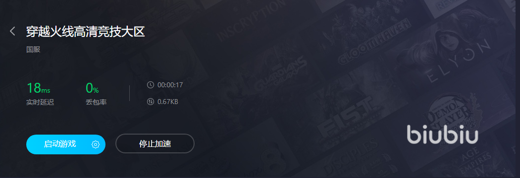 給win10系統(tǒng)的游戲加速過程也很簡(jiǎn)單,只需要win10的小伙伴們點(diǎn)開桌面的biubiu圖標(biāo),在我的游戲中找到自己已經(jīng)添加過的游戲點(diǎn)開,這里以穿越火線為例,選擇啟動(dòng)加速就可以直接給游戲進(jìn)行加速,結(jié)束的時(shí)候也是在biubiu中要關(guān)上加速器,過程非常簡(jiǎn)單,win10的小伙伴們可以輕松上手。