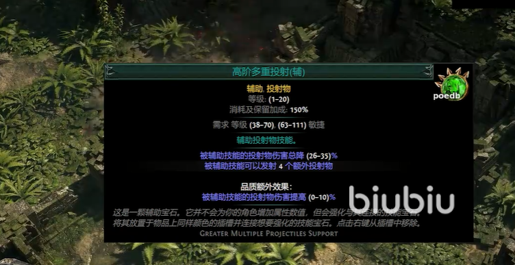 而輔助技能寶石的最大等級(jí)為1級(jí),不能再像一代中那樣升級(jí)到20級(jí)了,并且同一顆輔助技能寶石最多只能使用一次,假如說(shuō)你構(gòu)筑的BD需要同時(shí)使用火球和寒冰彈兩個(gè)技能,利用多重投射物提升了火球的投射物數(shù)量后,就不可以再在寒冰彈上使用多重投射物這一輔助技能了。