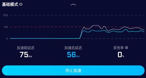 應(yīng)用內(nèi)的加速模式,一共包含兩種,分別是基礎(chǔ)模式和智能模式,大家可以根據(jù)所處的網(wǎng)絡(luò)狀況,去自由選擇,從下圖中,加速前后的延遲對比,可以看出,網(wǎng)絡(luò)優(yōu)化的實際效果,還是很不錯的。